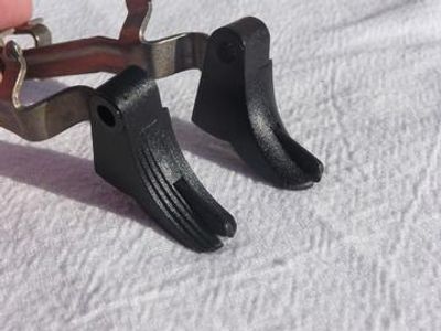 "D Street Gunsmithing" has a solution for this. Ship or bring your gun in for service and I will change your grooved trigger to a smooth one at the very reasonable price of $55.00. All parts are made by Glock.