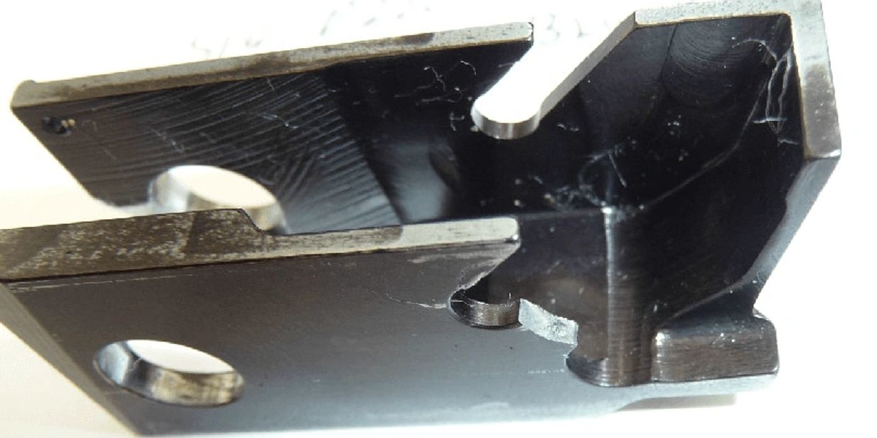 Of all the springs in the Sig pistol, the "recoil spring" is the most important, because it protects the gun from recoil. As this spring weakens, it allows the slide to slam harder and harder into the frame sending shock waves throughout the pistol. This eventually leads to broken internal parts and maybe even a cracked frame like the one shown above. Although Sig recommends this spring be changed every 5,000 rounds, many knowledgeable shooters change it every 3,500 to 4,000 rounds, especially with the higher-pressure rounds like the .40 or .357SIG calibers. Considering how you can change this spring out yourself and it costs less than $10.00, it's cheap insurance against reliability problems or breakage on your gun.
