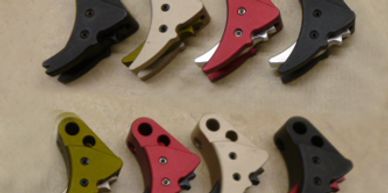 "HYVE TECHNOLOGIES" makes a wide, flat target trigger CNC machined from aluminum with a very comfortable feel. The safety tang compresses flat with the trigger so you don't have that uncomfortable blade feel like the stock trigger does. Also, it has adjustments for both pre-travel and post-travel so you can take out a lot of the slop. The trigger alone doesn't reduce the trigger pull so I polish out the trigger components and include a competition connector and trigger spring. This reduces the trigger pull down into that 5 to 6 pound range and smooths out the trigger pull.